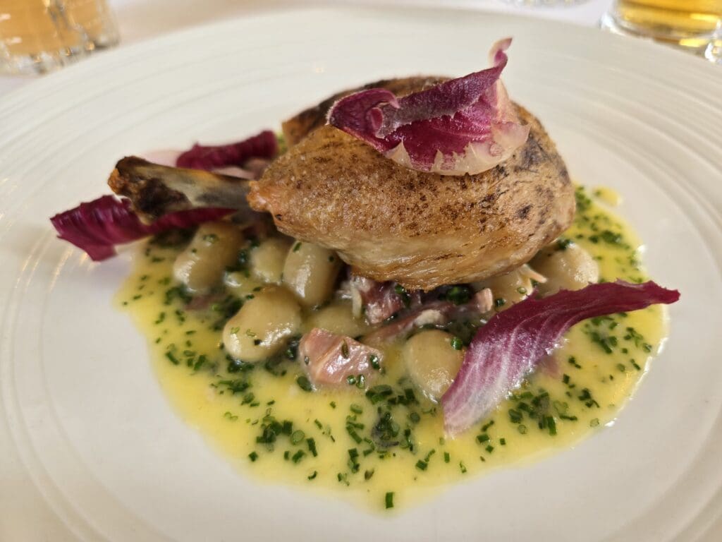 For the mains, the Confit Leg of Spring Chicken was a comforting yet sophisticated dish. The meat was tender, falling apart with the lightest touch, while the white bean cassoulet added a hearty, rustic element. The bitterness of the endive balanced the dish, making it an incredibly well-rounded choice.