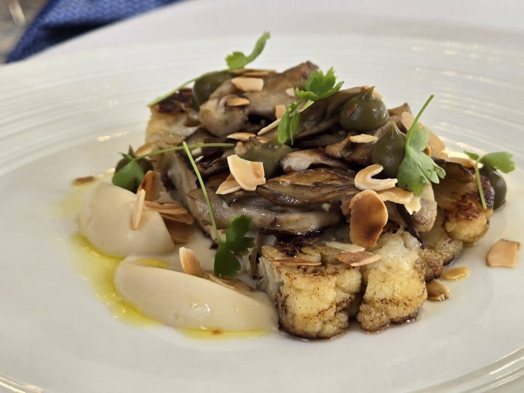 As we always like to push our tastebuds and try new things, the second main we opted for was the Koji Roast Cauliflower with Maitake Mushroom, Raisin, and Caper. It was a dish filled with mixed textures and flavours that turned out to be a delicious surprise. The raisins, presented in a purée form, added a subtle sweetness that beautifully balanced the umami depth of the mushrooms and the tang of the capers, while the toasted almonds on top brought a delightful crunch, enhancing the overall texture of the dish.