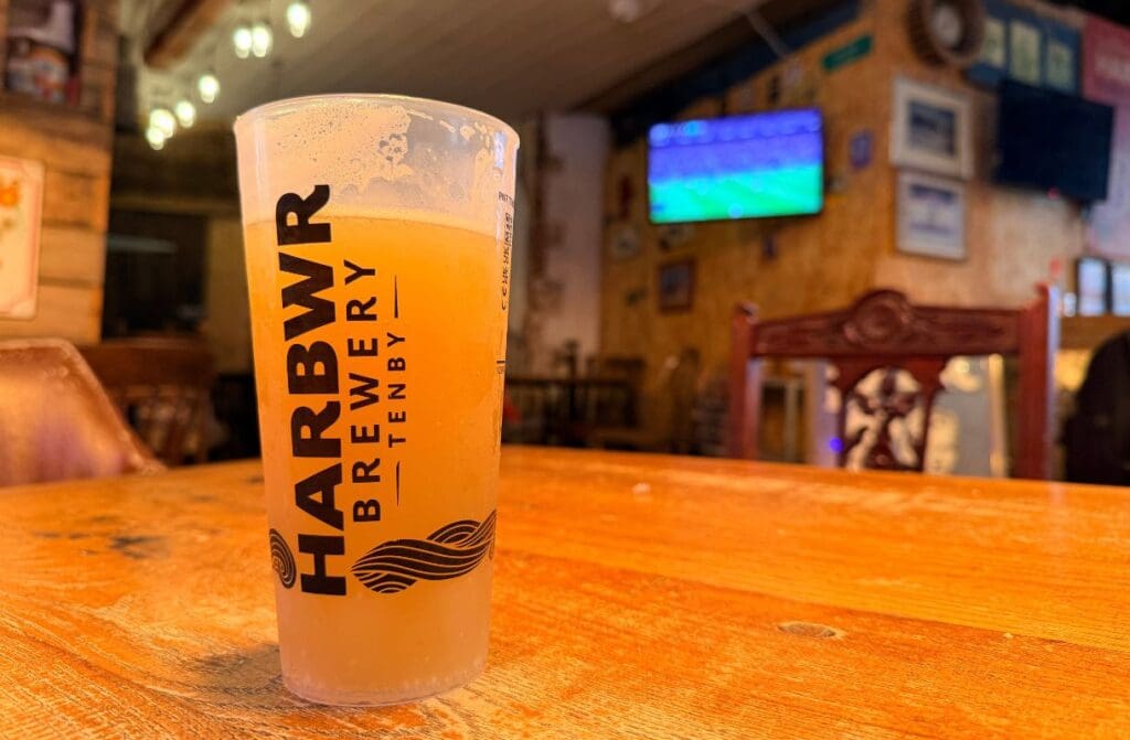We spent some time at Tenby Harbour Brewery. You can head to the brewery itself, where there is seating inside and under cover with heaters. The Six Nations was on when we visited, which added to the atmosphere.