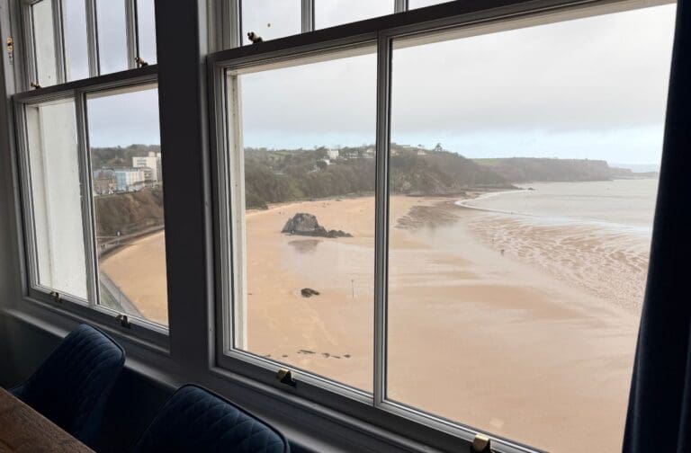 Living in Cardiff, we wanted to feel like we were a world away without actually driving for hours. We looked at countryside cabins and hot tubs, but the weather still felt a bit unpredictable. So we turned our attention to the coast.