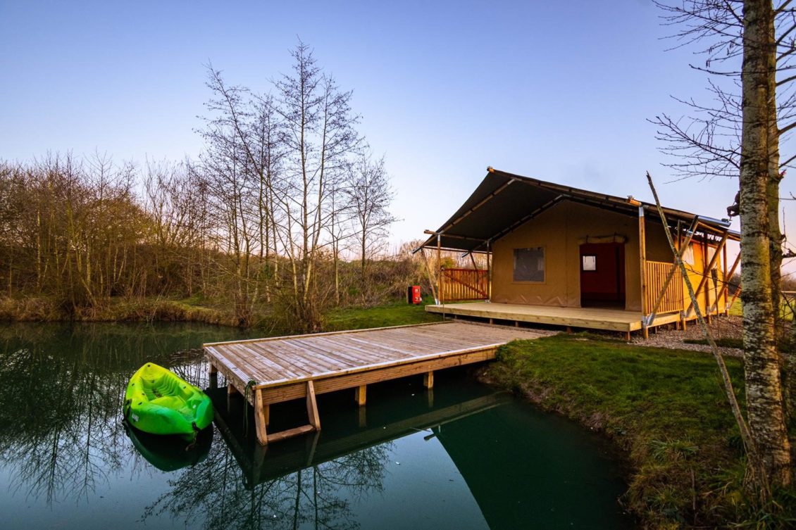 “The Arcadia Safari tent in its own five-acre field, comes with its own private lake to fish, swim, canoe. Also included is a small natural lounge pool, pizza oven, BBQ, fire pit, extra-large table, seating areas, hammock.”