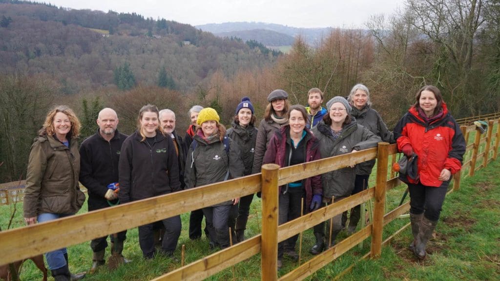 More than six hundred native broadleaf tree saplings have been planted in fields in Monmouthshire with help from the Wye Valley AONB’s Nature Networks Project, and volunteers from Coed Cadw, the Woodland Trust in Wales. Coed Cadw also contributed trees to the project.