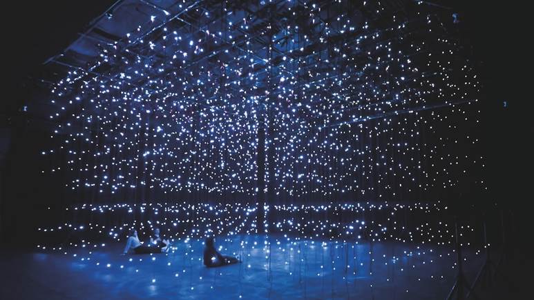An interactive theatrical installation where the audience steps into total darkness and becomes the centre of a shifting constellation. Guided by an unseen narrator, participants journey from complete sensory deprivation into a precisely programmed matrix of nearly 4,000 reactive LED lights and a 496-channel soundscape. Part meditation, part exploration, the work draws visitors into a hyper-focus of the present, tracing every decision they have made leading them to that precise moment.