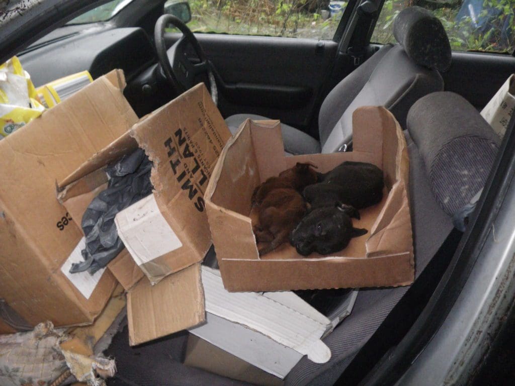 In a caravan she found eight black and chocolate Labrador cross puppies who were “very small”.