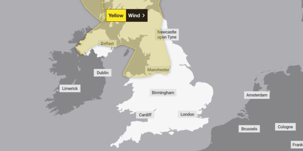 Strong westerly winds are expected to develop through the course of Saturday, with gusts of 50-60 mph developing quite widely across this region, and a small chance of gusts reaching 70 mph around some coasts and high ground areas.