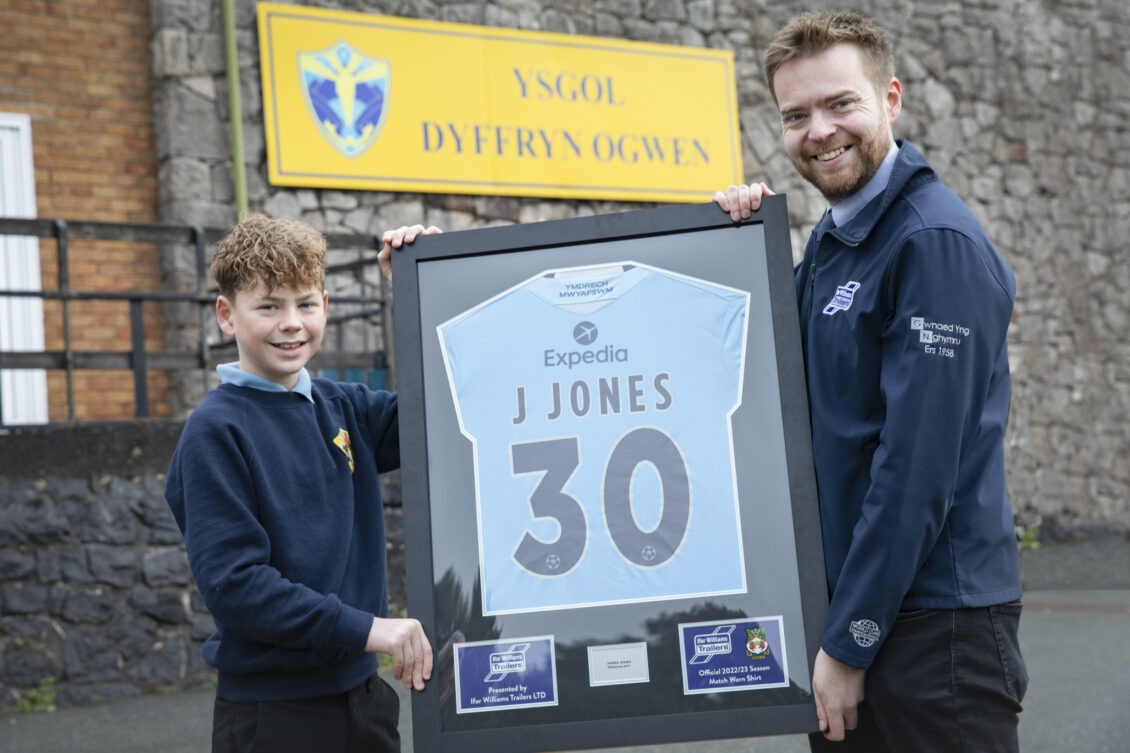 He was presented with the framed shirt, worn by James Jones during an away match last season, during morning assembly at his school, Ysgol Dyffryn Ogwen, Bethesda..